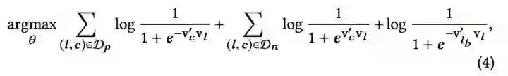 注意到公式的最后一项和前面两项的区别,在累加符号的下面,没有变 D 限制。我的理解是,word2vec 的算法毕竟是非监督的,而 Airbnb 的业务最终是希望用户 Booking,加入一个约束,能够将学到的 Embedding 向量更好的和业务目标靠近。后面还有一个公式,思路是类似的,不再赘述。