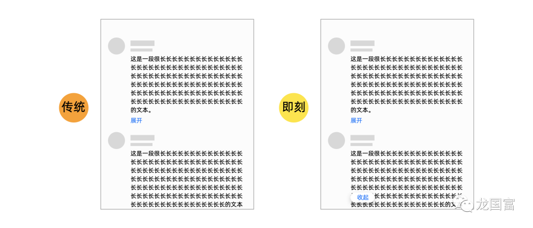 传统的做法:会把收起放在动态内容的末端,意思是当用户念完之后,可以选择再次折叠起来。