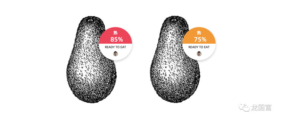 此外,盒马在牛油果“不熟”、“成熟”和“熟透” 3 种成熟度的基础上更进一步,更加精准告诉顾客对于同样熟了的牛油果,哪颗可以先吃(85%),哪颗可以后吃(75%)。