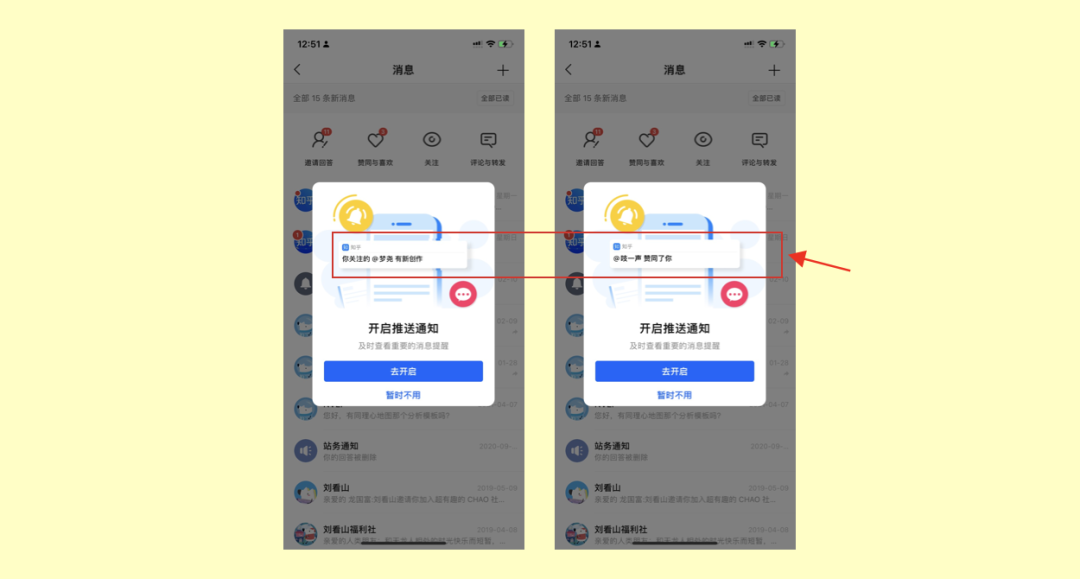 我发现知乎请求用户开启推送通知权限的弹窗做得很不一样。