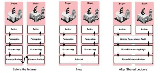 分布式账本可以完全消除这种需求,无论是由交易双方进行还是由第三方完成。这是由分布式账本的本质决定的,账本上所有节点(参与者)的状态必须一致。