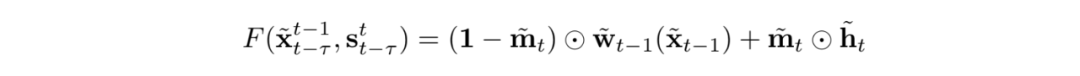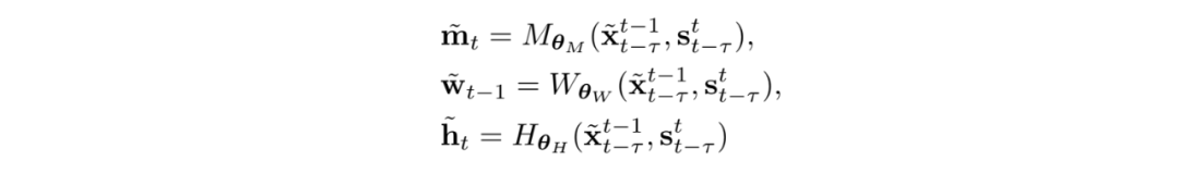 要得到目标输出的合成结果 X,函数计算的核心模块为软掩盖图 m(soft occlusion map),多帧图像构成的光流 w(optical flow),以及半合成图像 h(synthesized intermediate image),三个模块带入到深度学习,又可以被表示为一个个神经网络参数化后的计算函数(计算模块)为 M,W,H,其涉及的参数都可以被网络学习并且在完成训练之后固定: