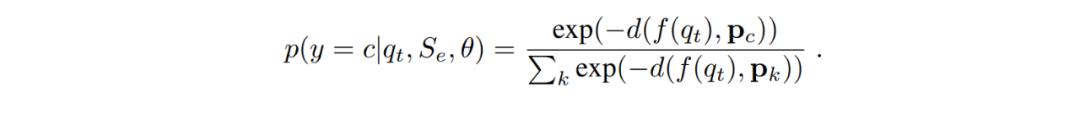 上式 p(y=c|q,S,Ɵ)是作为该节点在 N 个类别上由模型学习到的分布,整体来说是根据查询样本 q 的嵌入表达到嵌入原型直接的距离 d,最终做了一个 softmax 操作得到的。距离 d 在文章中简单地采用了欧氏距离,模型通过梯度下降算法(SGD)最小化学习目标损失 L(Ɵ)的同时,也不停地更新迭代相关参数集合。