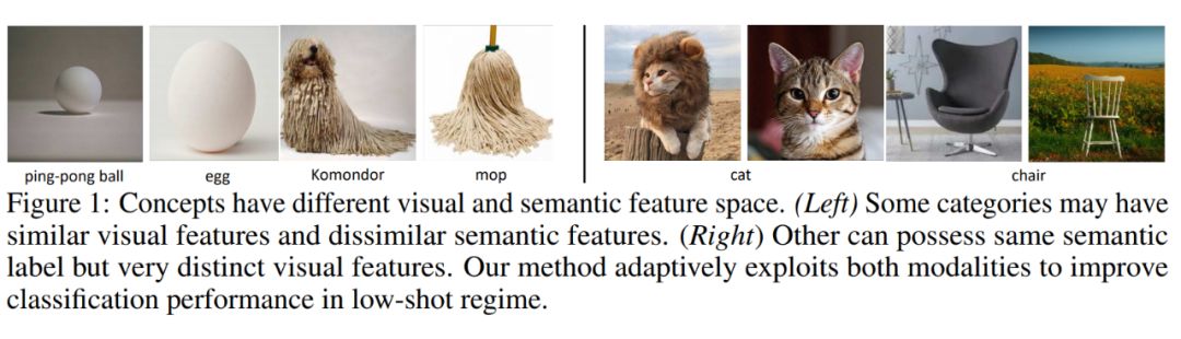 参考少样本学习时可能会遇到的困难样本如下图:左边示例的每对图片在视觉信息上非常类似,然而他们实际上归属语义相差很大的不同类别,右边示例的每对图片视觉信息差异较大,然而所属的语义类别都是同一个。这两组例子很好证明了当视觉信息或语义信息之一缺失的情况下,少样本分类学习由于样本数目的匮乏,提供到的信息很可能是有噪声同时偏局部的,很难区分类似的困难样本。