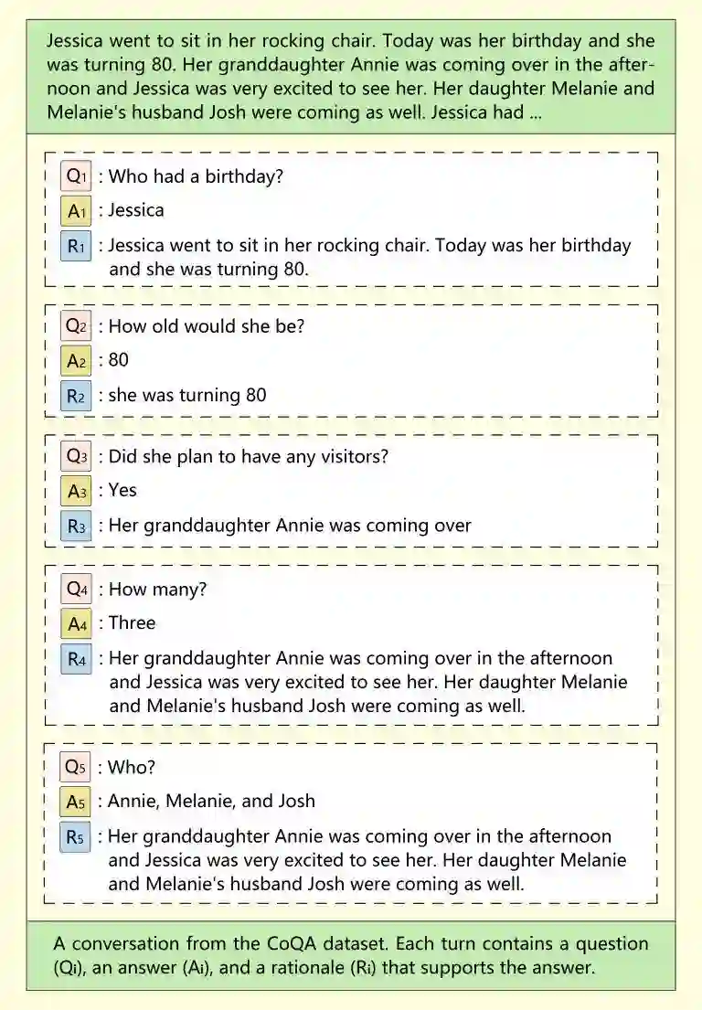 图注:来自 CoQA 数据集的一段对话,来自论文《CoQA: A Conversational Question Answering Challenge》
