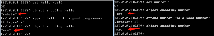 int编码字符串对象和embstr编码字符串对象在一定条件下会转化为raw编码字符串对象。embstr:<=39字节的字符串。int:8个字节的长整型。raw:大于39个字节的字符串。