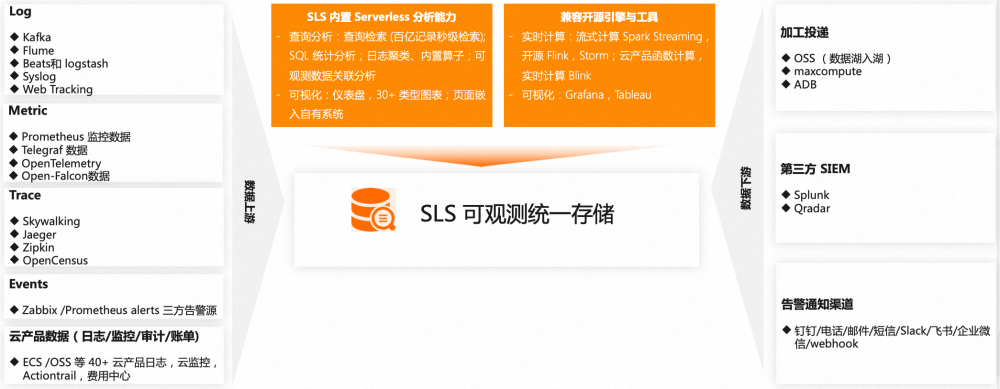 3. SLS 日志存储支持按 TTL 自动删除旧数据,也支持数据转储 OSS 长周期存储,无需运维。