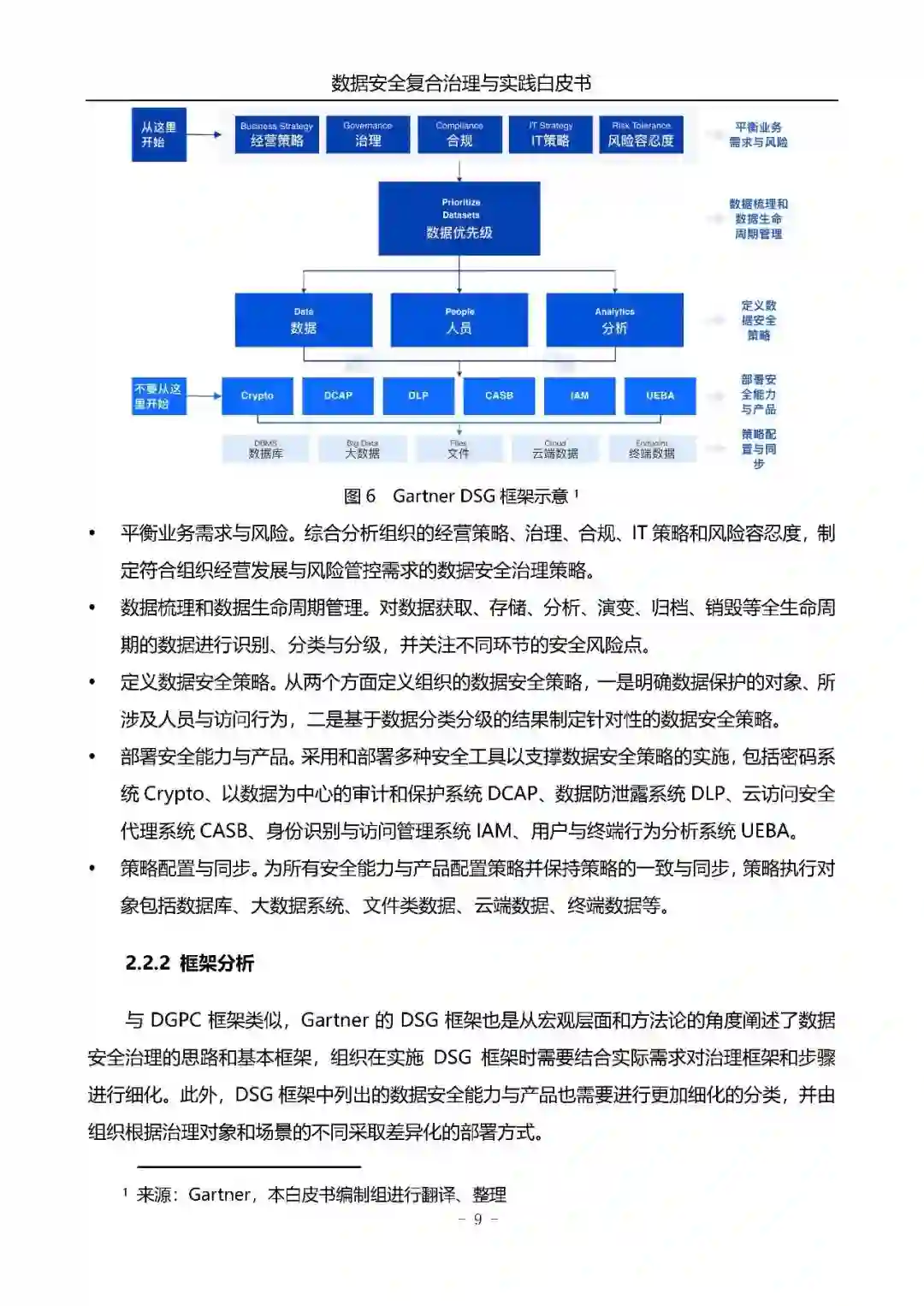 白皮书在对现阶段全球数据安全产业发展格局及治理态势进行充分调研与深度剖析的基础上,从引导企业建设与升级数据安全治理体系的视角出发,以“战略要位、实战牵引、全员参与、技术破局”为核心指导思想,强调数据安全的”复合“治理,即:对治理框架搭建中战略、管理和技术进行统筹规划与设计,形成基线设定、心智运营、原生设计、安全度量、可证溯源、红蓝对抗、测评认证等丰富的治理环节,强化治理过程的联动,将安全与业务复合、管理与技术复合,形成有机整体,充分发挥复合协同效能,构建体系化、准确量化、持续优化的数据安全复合治理模式。