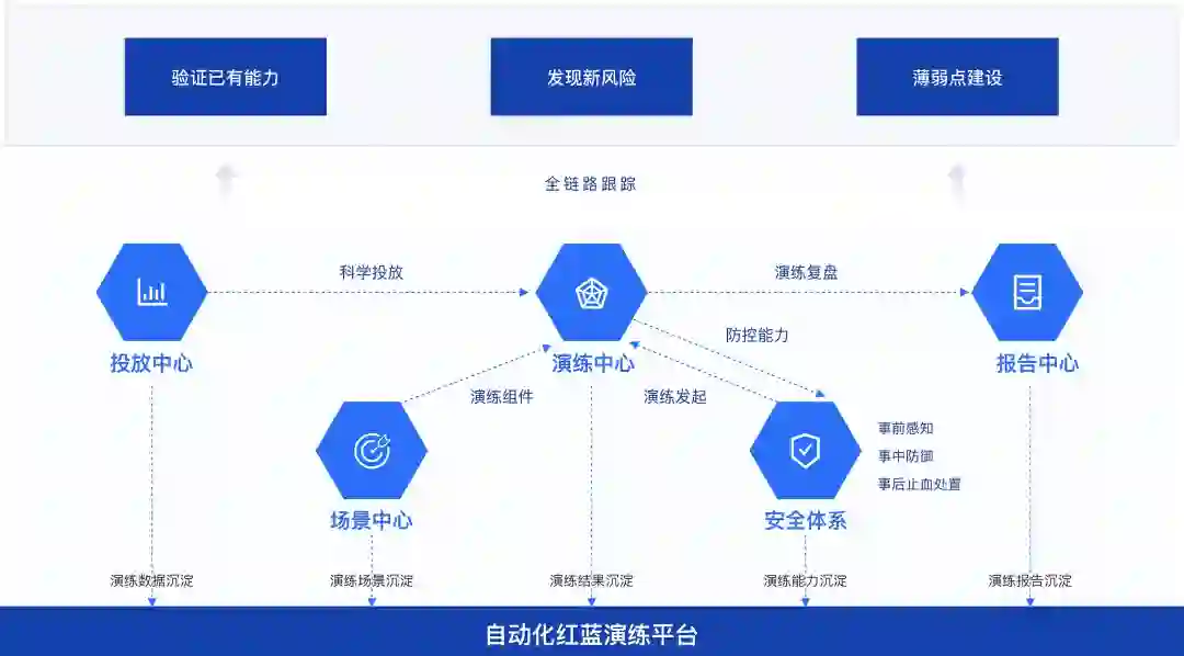 建立智能化的安全运营机制,以进一步提升数据安全治理的自动化水平和效率。以红蓝演练为例,通过沉淀自动化、模块化、组件化的红蓝演练能力,制定演练科学投放的策略,并建设全链路风险跟踪能力,形成常态化的红蓝演练机制,从攻防视角更加高效、及时地识别和修复安全风险,实现“以攻促防、攻防相长”的目标。
