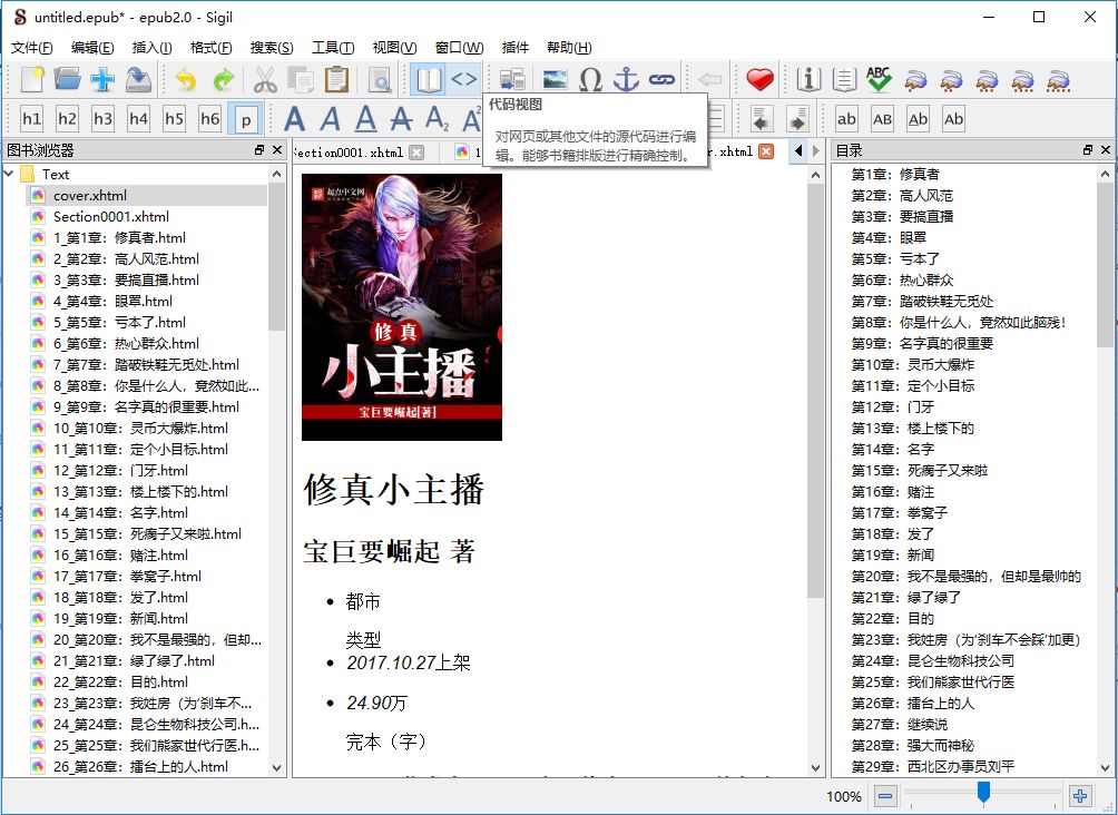 Sigil 是一个多平台的 ePub 电子书编辑器。官方网站:https://sigil-ebook.com/,下载页面在 https://github.com/Sigil-Ebook/Sigil/releases,根据自己的需求下载,安装很简单就不啰嗦了。