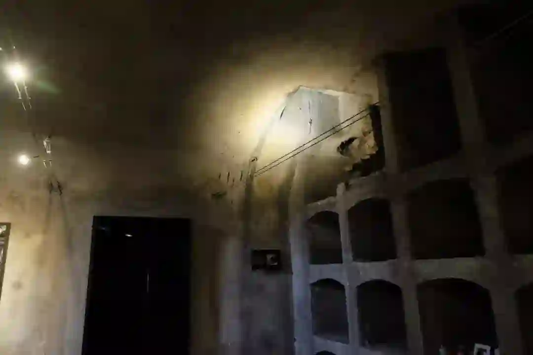 别动队员藏身的暗室如今专门照亮,光线昏暗时很难发现 摄于纪念博物馆