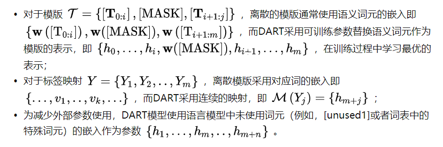 具体而言,本文提出的方法使用一类特殊的非语义词元作为模版和标签映射词,并在训练过程对这些词元的表示进行优化: