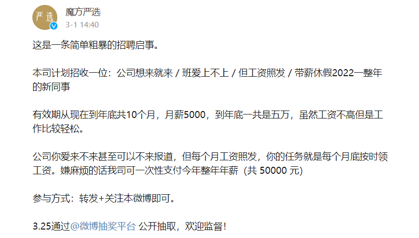 比如在“招聘抽奖”火了以后,同样有很多公司,模仿最初的创意,打着招聘的旗号,做抽奖的实质。