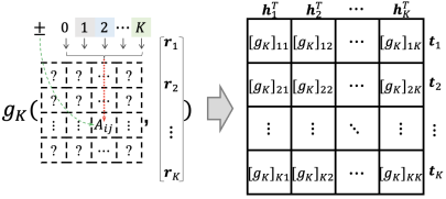 为了适应不同知识图谱中的不同语义模式,AutoBLM基于双线性模型,构建了统一的搜索空间,如图4所示,