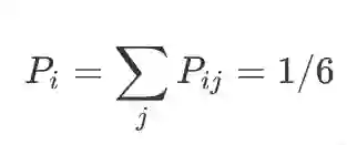 如果忽略第二个骰子的数字,那么得到第一个骰子的某个结果(比如 6)的概率为: