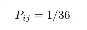 现在扔出两个骰子,得到 36 对结果中任意一个的联合概率为: