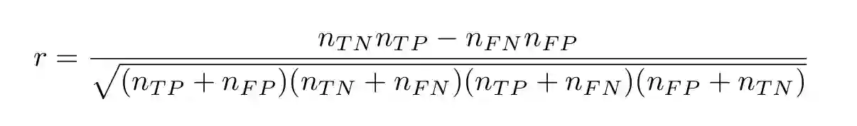 对于二元分类器而言,我还推荐皮尔森相关系数(Pearson correlation coefficient):