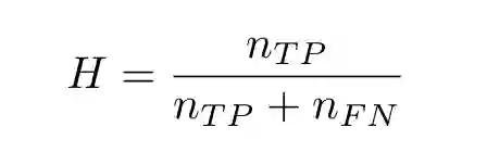 根据这五个参数,你可以写下简单二元分类器所有可能的技术得分。受试者工作特性(ROC)曲线的受试者通过在分类阈值变动的情况下绘制两个此类技术得分的对比图得出。以下是命中率: