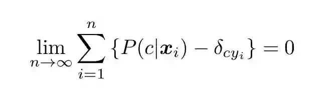 只需要去掉取极限符号,就可以用式 (4) 中的概率密度的定义导出一种最古老、最复杂的统计分类方法。在测试点x上取一个半径,然后数出在那个半径距离内的训练样本在一个类别或者另一个类别中的数量。