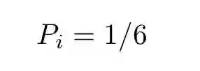 扔出一个骰子,有六种可能的结果,每一种结果的概率都是 1/6。