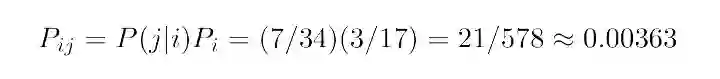 由于上一张牌值十分的概率也是 7/34,那么两个事件都发生的联合概率为: