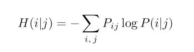 该公式告诉我们在先验分布是 P_i 的情况下,表示事件 i 需要多少信息。这个度量可以推广到多变量分布。其条件熵的表达式为:
