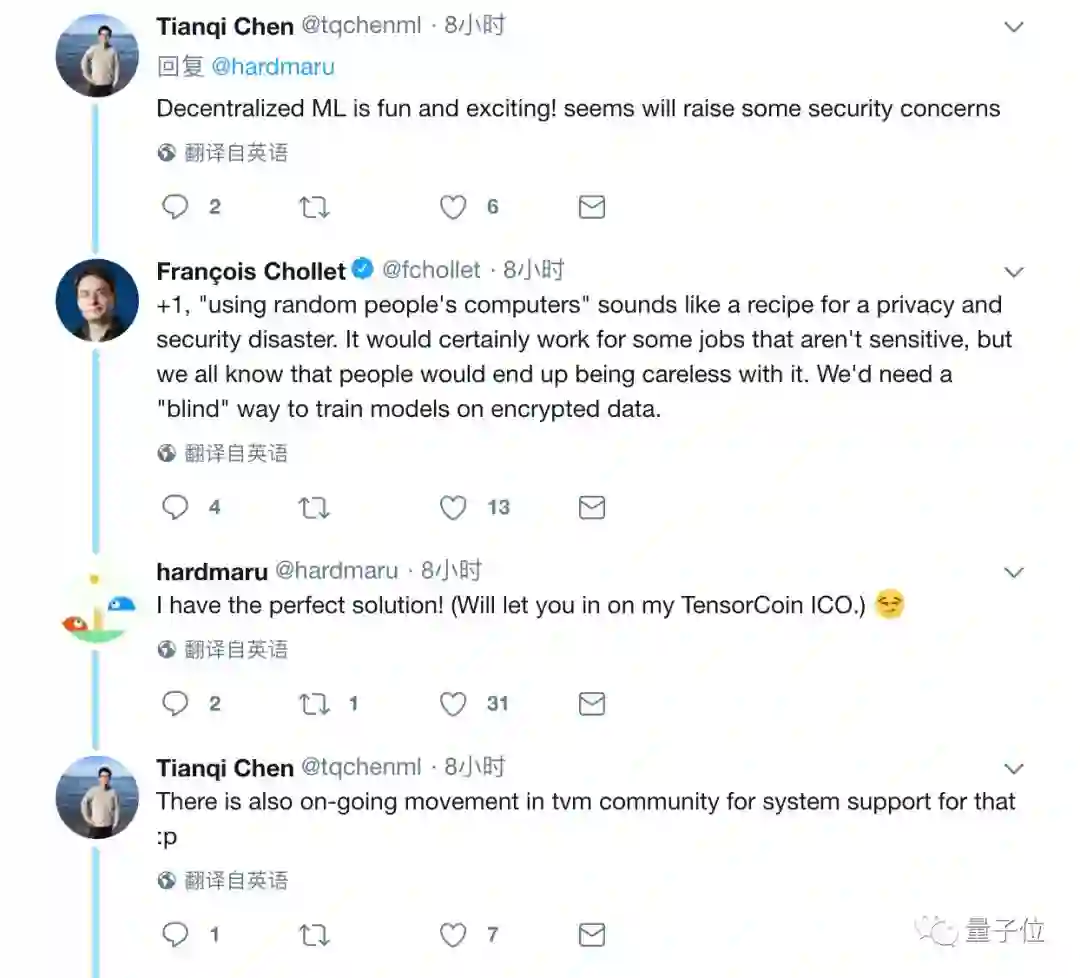 +1,Keras作者François Chollet附议并且进一步指出,随机使用别人的电脑听起来会引发隐私和安全灾难。对于那些训练数据很敏感的项目尤其如此,所以还得需要一个更安全的方式进行。