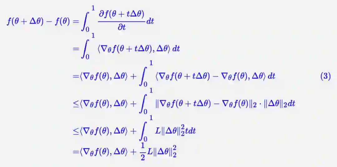 证明并不难,定义辅助函数 f(θ+tΔθ), t∈[0,1],然后直接得到: