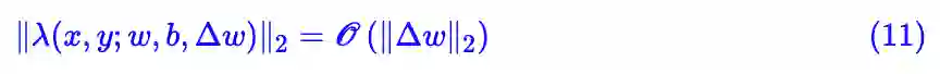 将圆括号部分记为 λ(x,y;w,b,Δw),根据前面的讨论,它被约束在某个范围之内,这部分依然是平稳项,既然如此,我们不妨假设它天然满足 L 约束,即: