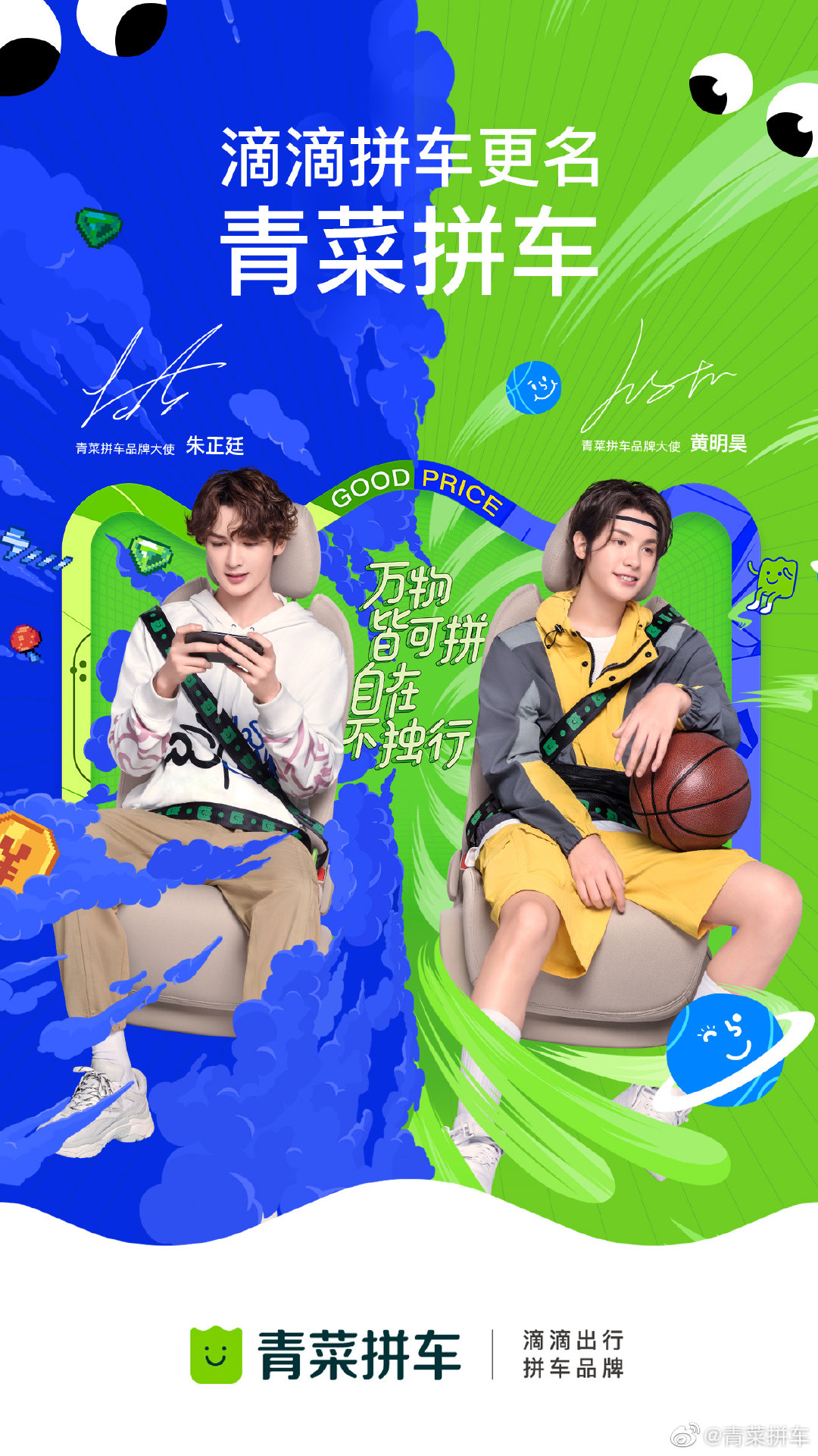 7 月 20 日上午,滴滴拼车正式宣布更名为 “ 青菜拼车 ”,采用全新品牌标识,邀请明星朱正廷、黄明昊担任新品牌大使。“青菜拼车”也在今天正式上线,打开 App 首页便可以看到拼车入口。