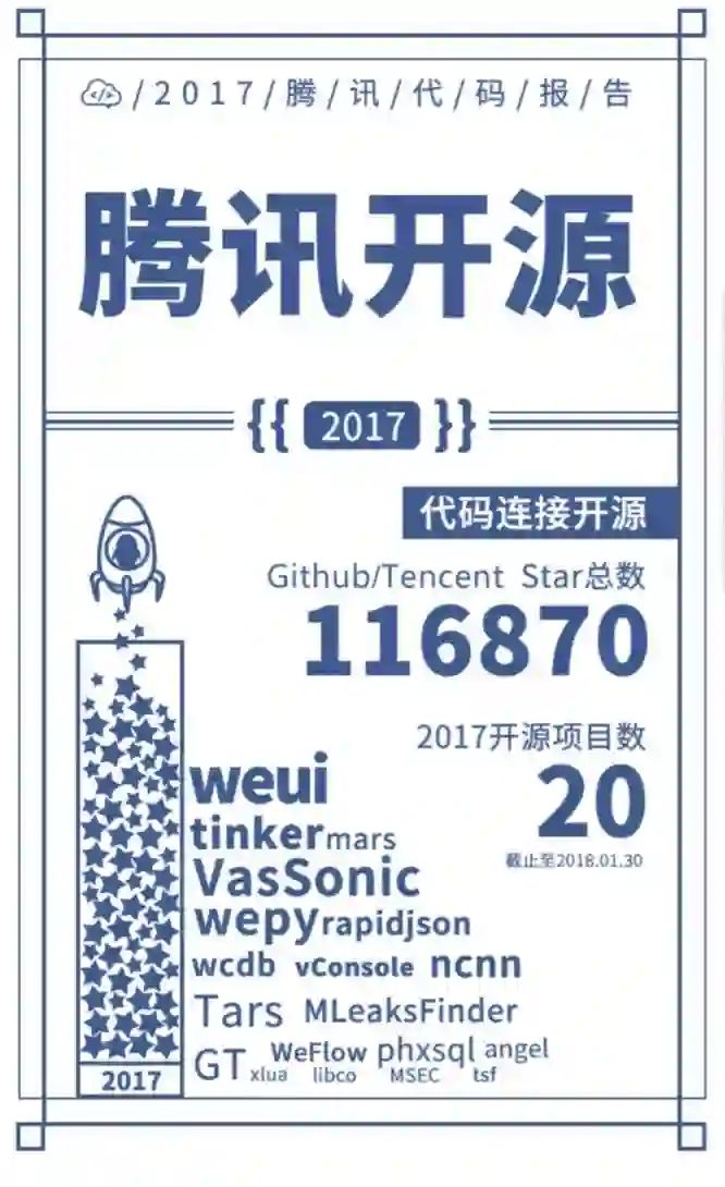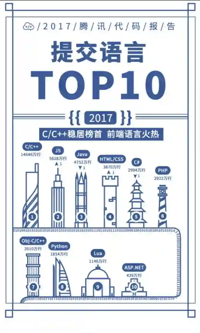 腾讯近日发布了 2017 年度代码报告,对过去一年腾讯的研发数据进行了统计,涵盖代码、开发者、语言等基础数据。据报告所述,截止 2017 年: