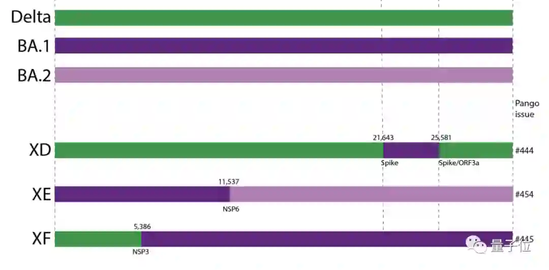XE并非形单影只,还有XD和XF两种重组变体,不过它俩重组的是Delta和BA.1毒株。