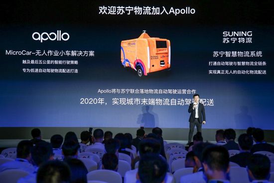 7月4日消息,在今日的百度AI开发者大会上,苏宁物流与百度自动驾驶事业部联合宣布,将加速落地物流自动驾驶技术,在2020年实现末端配送的自动驾驶技术普及和无人配送车的规模化量产。