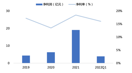 相比于报告期内持续亏损的奈雪,蜜雪冰城一直是盈利的,且随着营收的增长,蜜雪冰城的净利润也实现了高增,2019-2021年净利润的年复合增长率达到了108.0%。2021年,蜜雪冰城实现净利润19.1亿元,同比增长203.1%,2022Q1实现净利润3.91亿元。