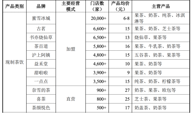 蜜雪冰城和奈雪的单价、门店数量及单店销售额