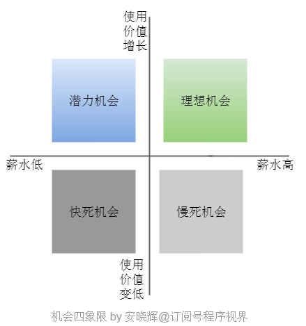 所以,我们要从加薪的两个关键点谈起,提供一个工作机会评估工具,帮助我们来评估是应该待在公司等加薪,还是不断跳槽谋求涨薪。