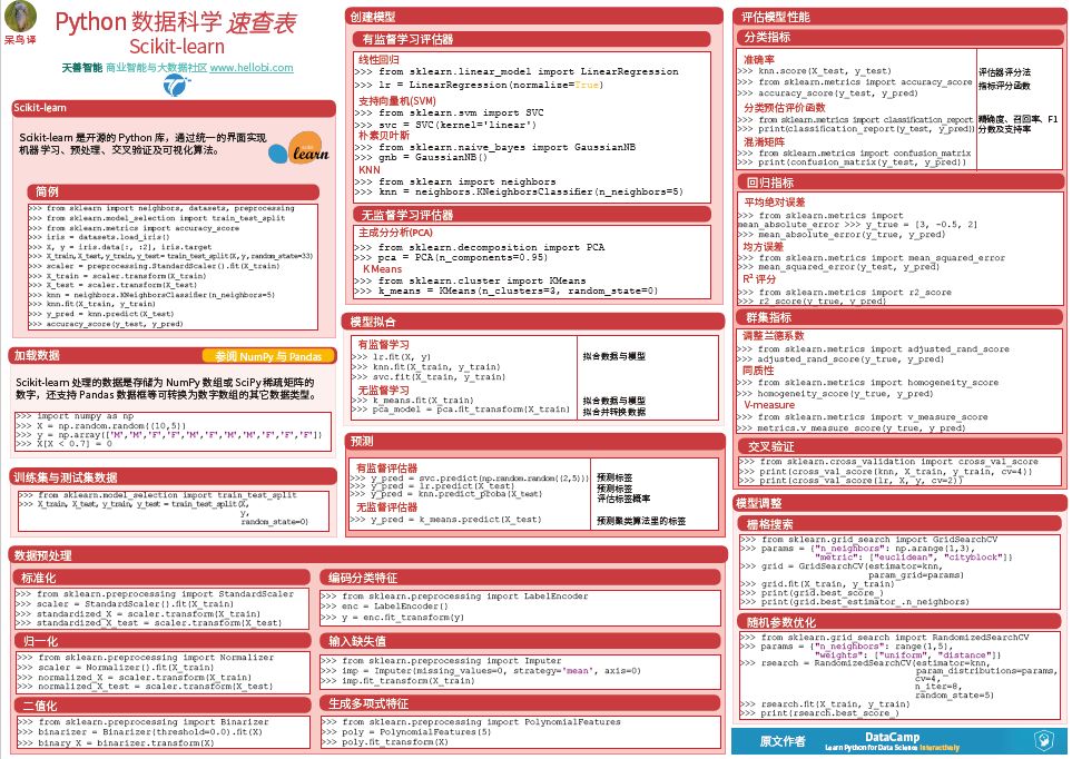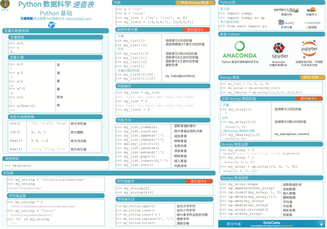 好消息!DataCamp 推出的 Python 数据科学速查表,已经翻译成中文啦!