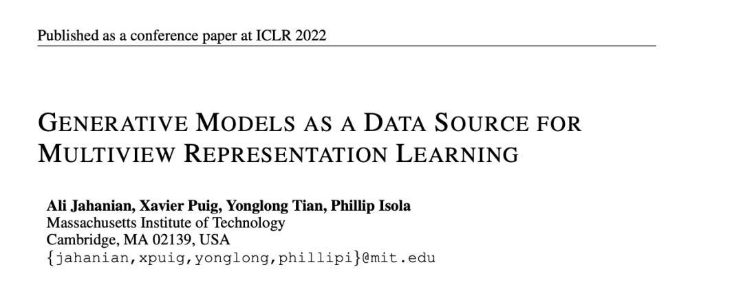 相关研究论文以“Generative models as a data source for multiview representation learning”为题,以会议论文的形式发表在 ICLR 2022 上。