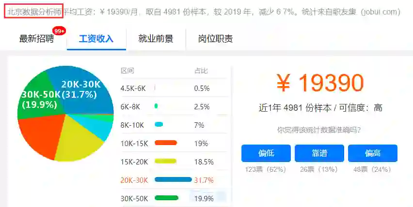 这与个人技术Level有很大关系,翻阅各大招聘网站JD,你能很快找到原因:高薪分析师除了掌握必要的工具和方法论,更重要的是对算法的理解程度。但很多分析师工作用不到算法,平时也不积累相关知识,后期发展中就遇到了很多麻烦: