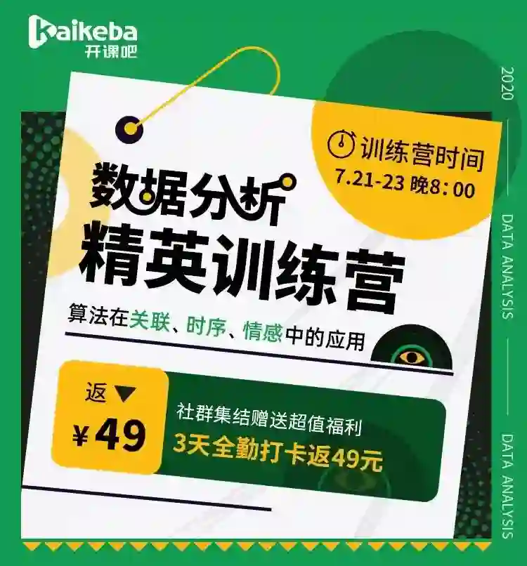 无论你是对数据分析、数据挖掘感兴趣,想转行大数据领域,或想深耕、提升数据分析技能,这次训练营都极具学习价值,能让你在短时间内