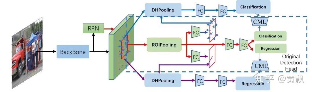 作者出发点是目标检测框架中分类的回归任务对于特征的要求不同,而这一点在我上面提到的Double Head RCNN已经提过了。Decoupling Head则是考虑到我们前文提到的anchor和特征不对齐问题,利用传统的ROI Pooling主干预测anchor的粗略位置,然后用deform conv的方式校正分类分支。再在主干上保留原始的回归和分类任务。总而言之可以将其概括为:Double Head RCNN + AlignDet + Faster RCNN。