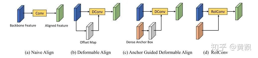 上图中(a)指的就是RefineDet类的对齐,(b)就是Reppoints一类的对齐,(c)就是Guided Anchoring类的对齐,(d)就是AlignDet类的对齐。AlignDet把基于anchor偏移量的特征对齐称作ROIConv,还分析了具体的偏移校正过程:
