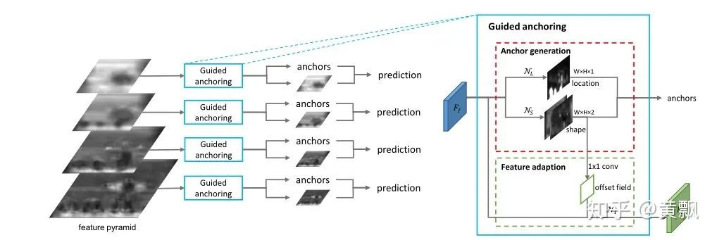 这个算法解决的是anchor的设计问题,而anchor的设计需要解决形状对齐和特征一致性的问题。其中形状对齐指的是以往anchor的尺寸和长宽比都是预设的固定几个,首先这也是超参数,其次无法适应多样的样本形状,因此该算法以特征图每个点作为中心,先预测anchor的长宽,再用于预测。而特征一致性问题则是一个很巧妙的问题,原因在于,同一层的特征图上每个点的感受野一致,但是预测到的anchor尺寸却不同,那么基于不同大小的anchor来做的分类任务却基于相同的特征感受野,这显然是存在问题的。所以作者基于预测得到的anchor长宽,利用deform-conv为每个anchor分配了新的特征区域,其中deform-conv中的offset直接采用预测得到的anchor长宽。