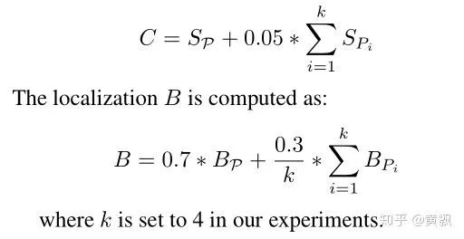 很多大型比赛的固定策略“Ensemble",已经不奇怪了。naive ensemble的策略是借鉴的2018年的OpenImage第二名,给定bounding boxes(P),以及topk个与之IOU较高的候选框,依据验证集的分数来分配各个模型在集成时的权重,这里还分各个目标类别,然后进行加权: