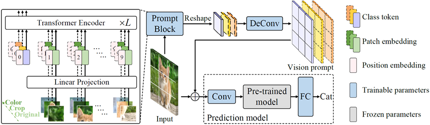 在计算机视觉中,微调是广泛采用的将预训练视觉模型适应于下游任务的方法。然而,由于这类方法多采用低效的全局参数更新策略,以及严重依赖于高质量的下游数据,在实践中部署非常具有挑战性。最近,基于prompt的方法采用任务特定的提示以使下游任务适应预训练模型,极大地提高了许多自然语言下游任务的性能。在本工作中,我们将这种显著的迁移能力扩展到视觉模型中,作为微调的替代方案。为此,我们提出了视觉提示调整(VPT),这是一种参数高效的视觉调优范式,可将冻结的视觉模型适应到下游数据。VPT 的关键是基于提示的调优,即只学习与输入图像拼接的特定于任务的视觉提示,并冻结预训练模型。通过这种方式,VPT只需训练少量的额外参数即可产生轻量级、鲁棒的下游模型。实验证明我们的方法在大量的下游视觉数据集上优于当前的微调方法,包括图像损坏、对抗性示例、长尾分布和OOD问题等。