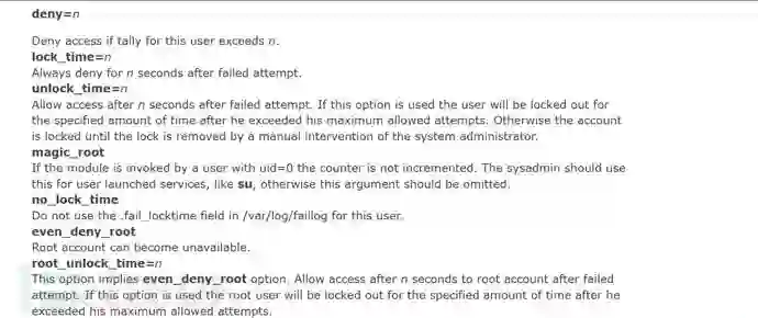而网上对于pam_tally2参数资料,不能说不对,但是总觉得不够详细和全面,所以写了这篇文章说明说明。
