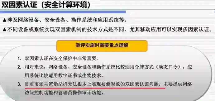 堡垒机所管理的服务器,必须对连接方式进行限制,通过防火墙或者网络设备什么的,确保只能通过堡垒机进行连接。否则,就算堡垒机强制使用双因素认证,但服务器还是能通过远程桌面或者ssh连上去,那堡垒机的双因素认证就意义不大了。