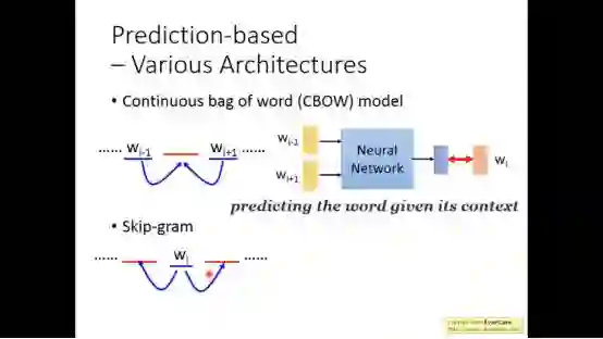 当然prediction-based 不止这一种架构,还有很多其他架构,比如continuous bag of word model,skip-gram