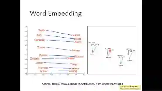 对于word embedding我们可以发现在向量空间中每个国家和他的首都有着类似的关系