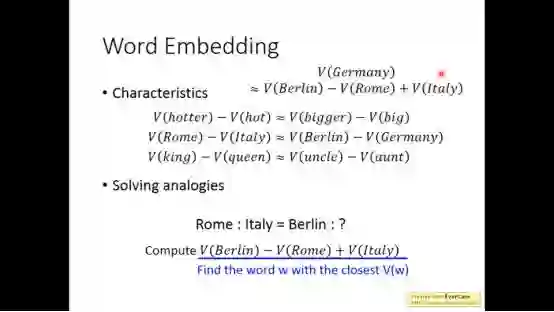 例如比较级两个词语向量相减近似相等,我们可以发现,对于word embedding,有特定关系的两个词语他们的向量差是近似相等的。